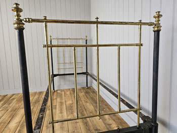 Fully restored beds are stripped down, shot blasted, bare metal primed, re-painted and re-polished. Any brass work that is damaged beyond repair is replaced with antique brass if available or solid brass restoration parts. Any damaged cast iron or metal work is always professionally welded. All the beds have minor knocks and bumps to the metal and brass which adds to their charm.