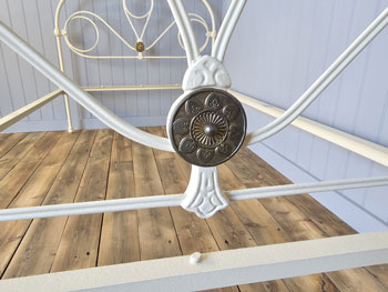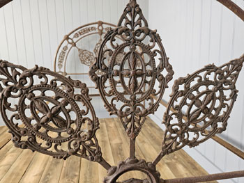 Super Victorian small double all iron three hoop bedstead with lots of castings, quite rare in small double size. SOLD (code: P 31) |