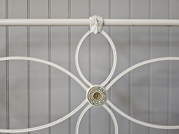 French 4ft iron bed with shell shaped castings and no foot end, ideal for smaller rooms or attic rooms. SOLD (code: FFR1031) |