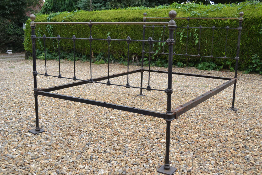 Code BA456 Victorian brass and iron double cottage bed frame slender legs with brass balls and straight brass rails..