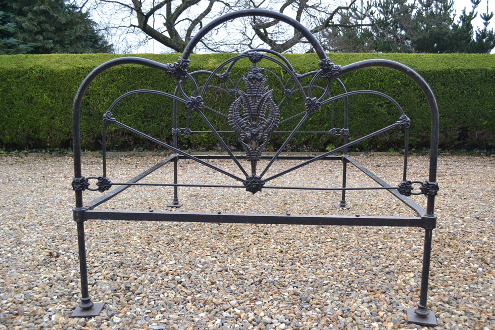 Code BA519 Very unusual Victorian 3 hoop iron double bed frame with entwined ferns / leaves to head and foot ends.