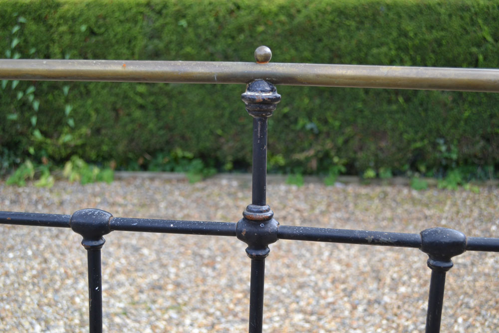 Simple Antique Brass & Iron 4ft 6in double bed frame with chinese cap finials.. The bed is now awaiting restoration in your choice of colour.