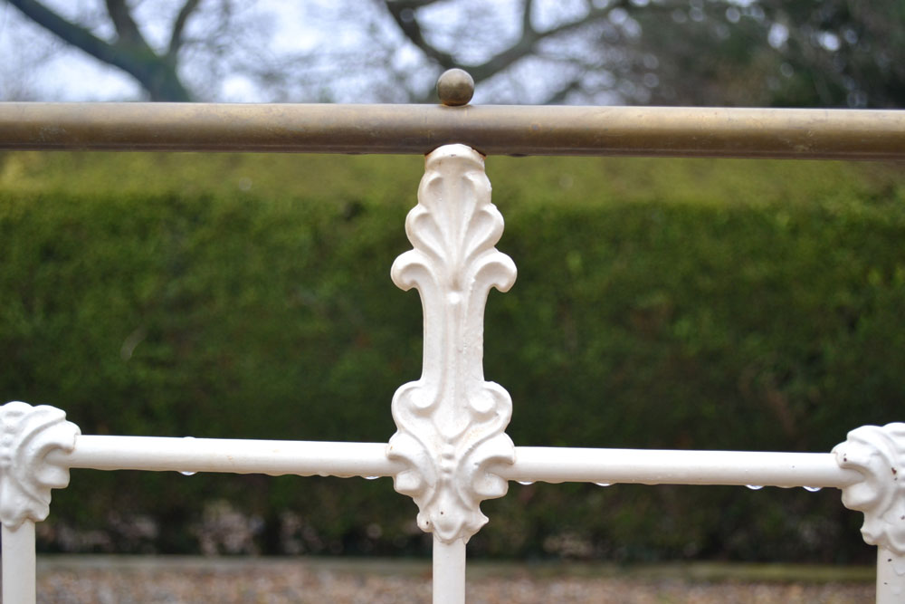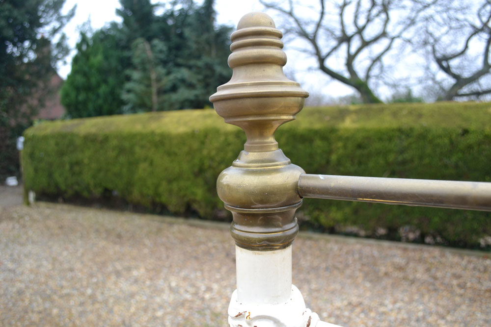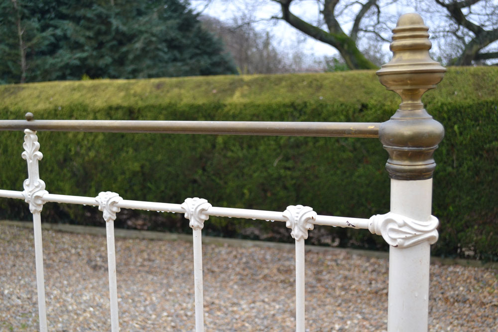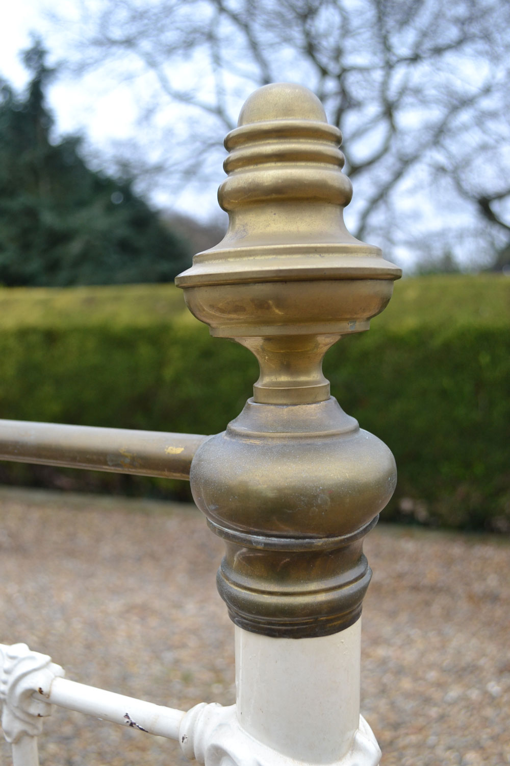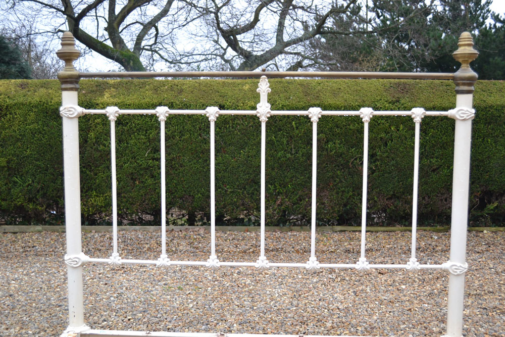 Code BA622 Late Victorian brass and iron double bed frame with bigger 2 inch posts and really nice finials.
