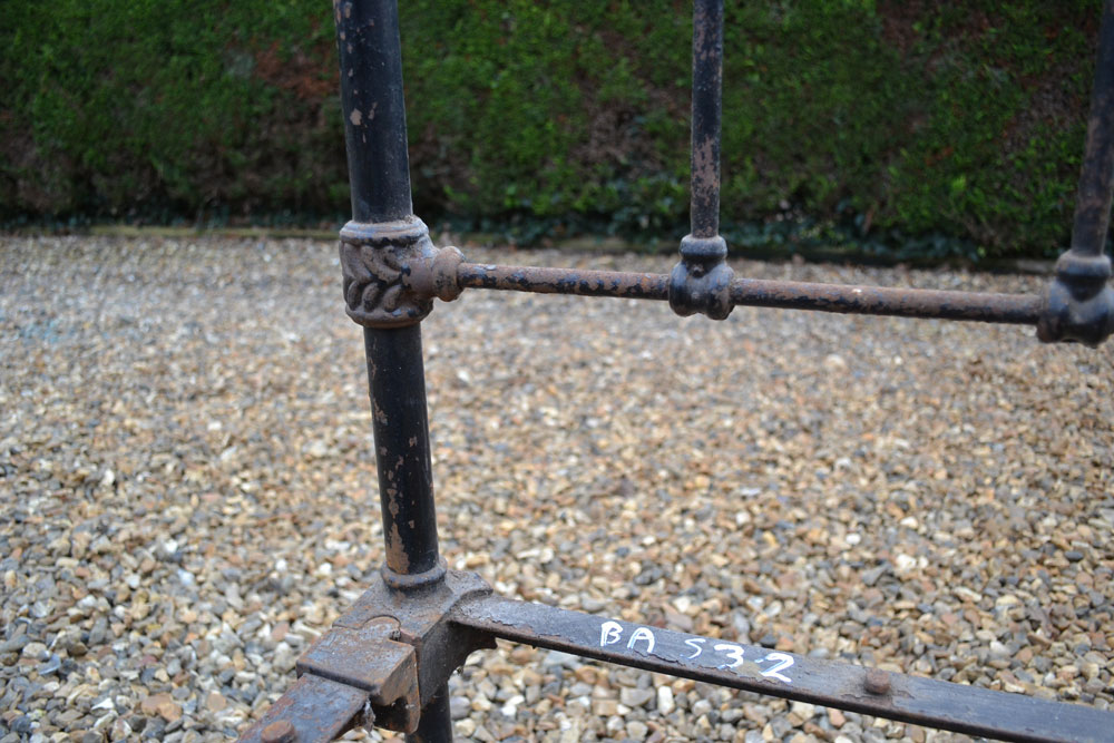 Code BA832 Lovely Victorian brass and iron footless double bed frame with large brass disc and spindles..