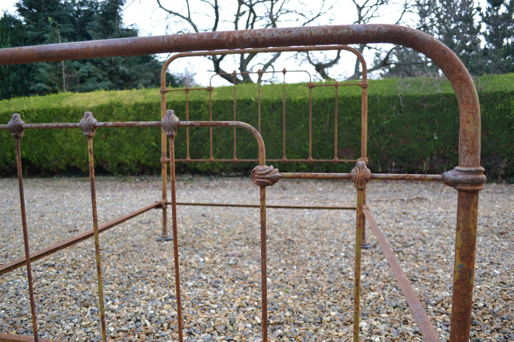 Code BA714 Old Antique French all iron double bed frame in an unusual style. New in from old French barn..