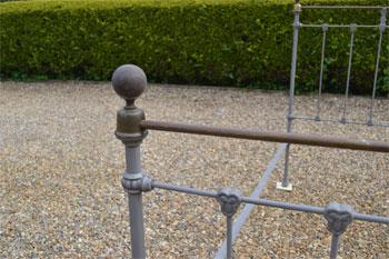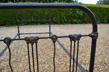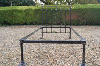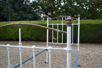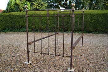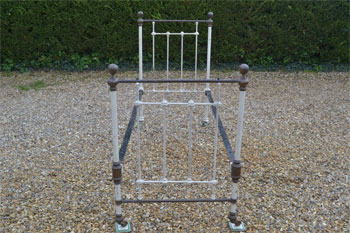 Victorian all iron cottage 3ft 6in large single bed frame. Ideal for a growing child, 3ft 6in mattresses are still available. SOLD (code: BA462) Photos show bed in unrestored condition |