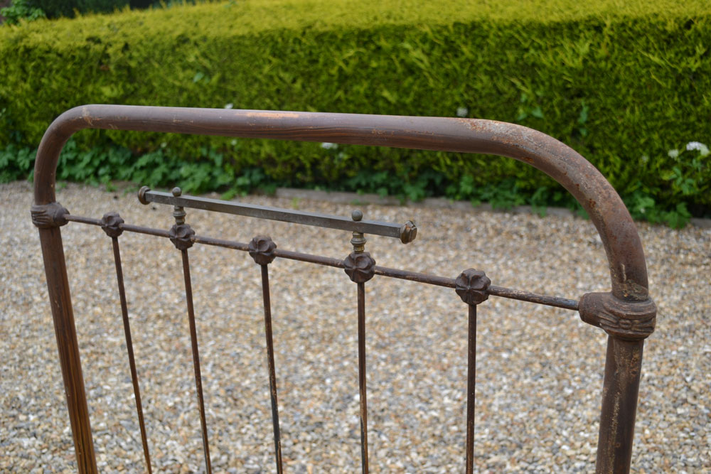 Stylish little antique iron 3ft single bedstead with a small brass rosette to the head and foot ends. SOLD (code: R 513) |