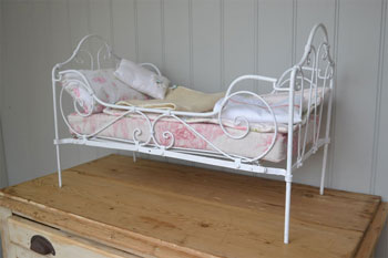 Little Antique French painted daybed, with mattress and quilts etc. Ideal for Teddy bear or doll display. SOLD (code: BA224) |