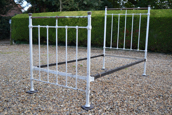 Attic found Victorian all iron 3ft 6in large single cottage bed frame with excellent castings and slender legs. SOLD (code: BA596) Photos show bed in unrestored condition |