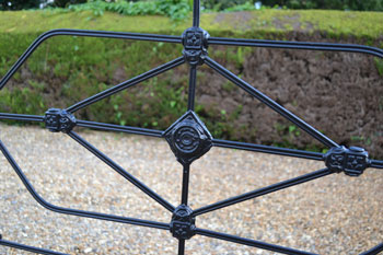 Pretty Victorian all iron cottage 3ft bed frame with a nice combination of castings and steel bars. SOLD (code: BA380) Photos show bed in unrestored condition |