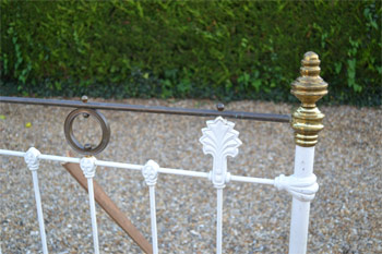 Fully restored beds are stripped down, shot blasted, bare metal primed, re-painted and re-polished. Any brass work that is damaged beyond repair is replaced with antique brass if available or solid brass restoration parts. Any damaged cast iron or metal work is always professionally welded. All the beds have minor knocks and bumps to the metal and brass which adds to their charm.
