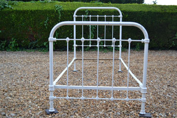 Low Victorian footless all iron 3ft single bed frame. Ideal for cottage rooms with dropped / low ceilings. SOLD (code: BA389) Photos show bed in unrestored condition |