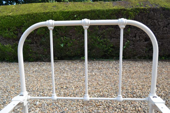 Fully restored beds are stripped down, shot blasted, bare metal primed, re-painted and re-polished. Any brass work that is damaged beyond repair is replaced with antique brass if available or solid brass restoration parts. Any damaged cast iron or metal work is always professionally welded. All the beds have minor knocks and bumps to the metal and brass which adds to their charm.