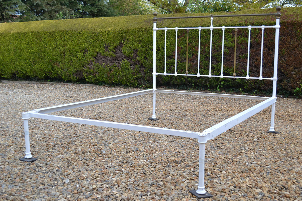 Antique brass and iron 5ft king size footless bed with straight rail and brass bed knobs. The frame has been professionally altered to take a moderm 5ft king size mattress. The bed has not been used for many years and is now awaiting restoration.
