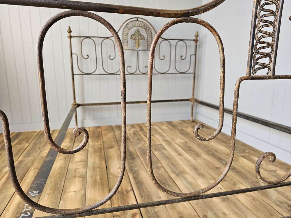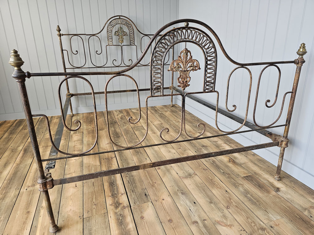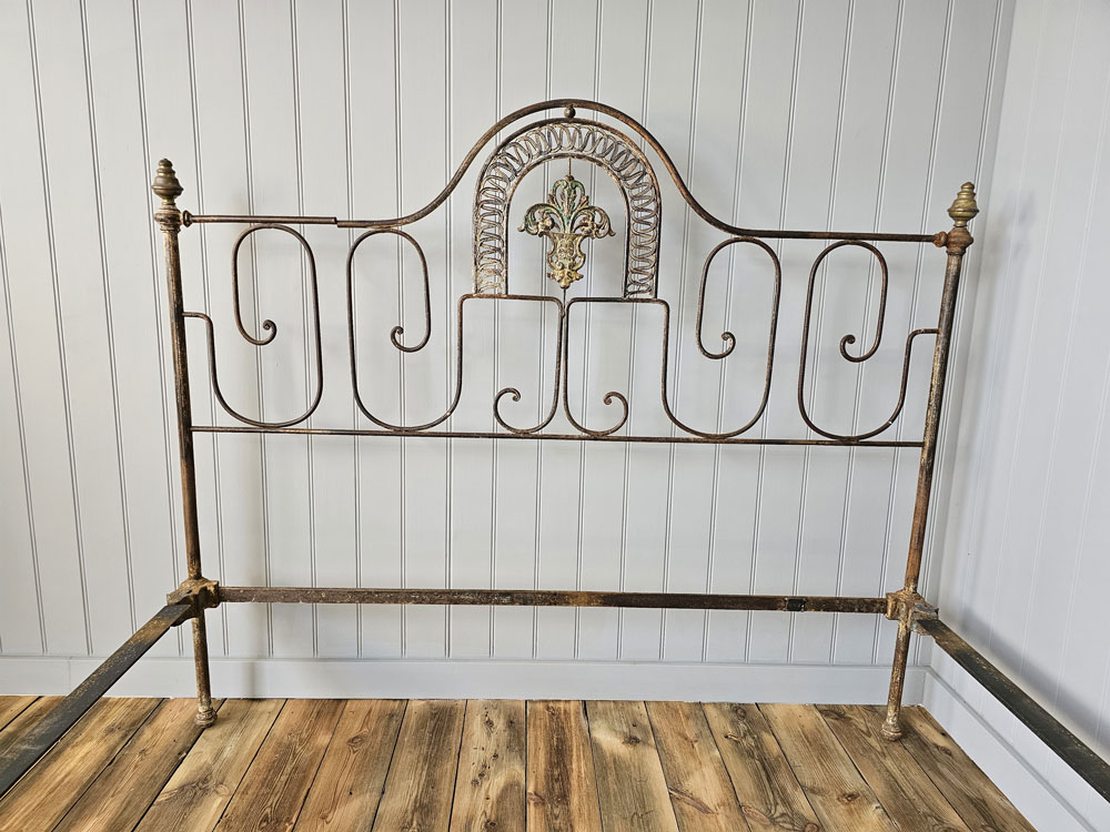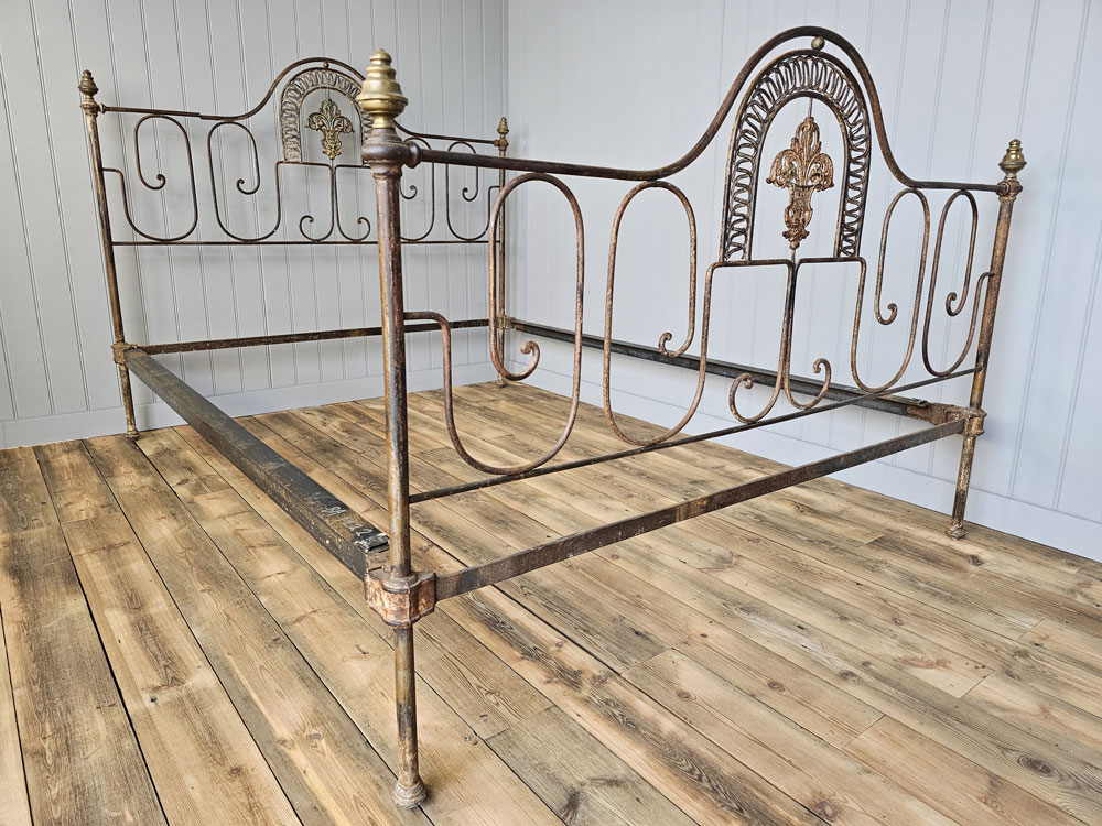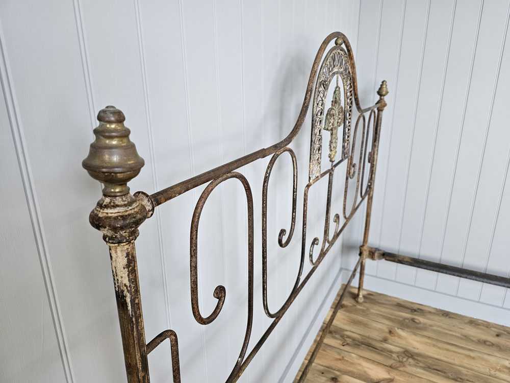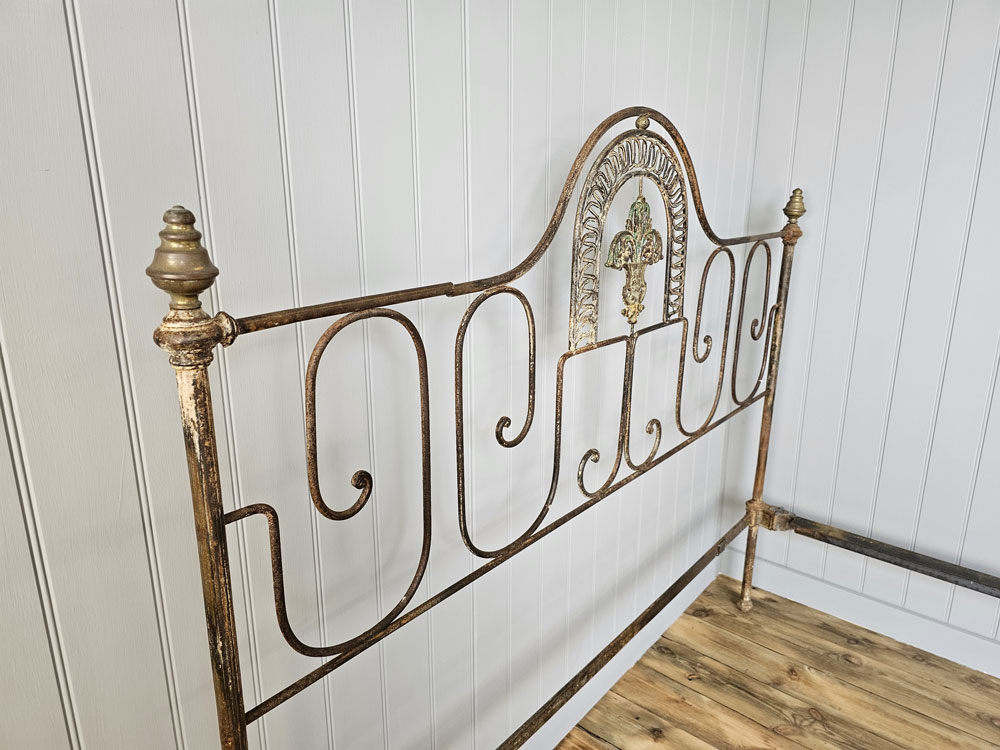 Rare Antique 5ft King size Portuguese bed frame with some nice castings and turned brass finials. Ready for restoration in your choice of colour.