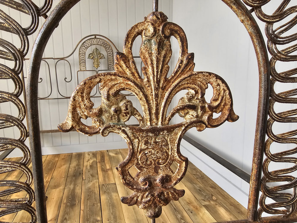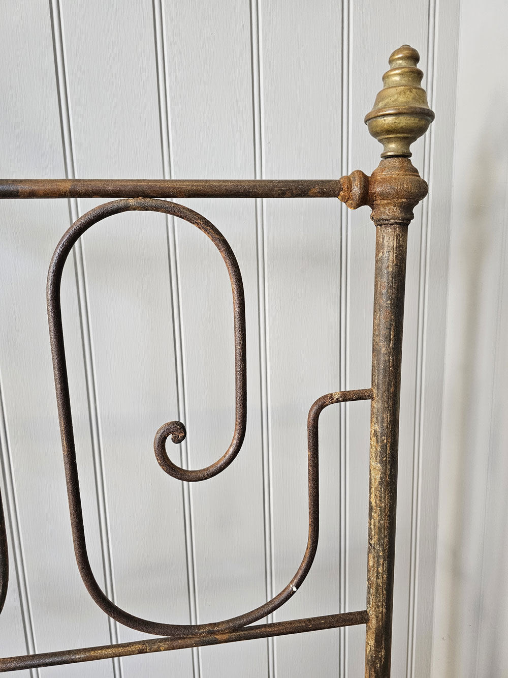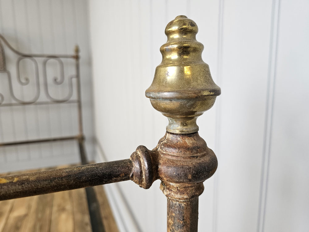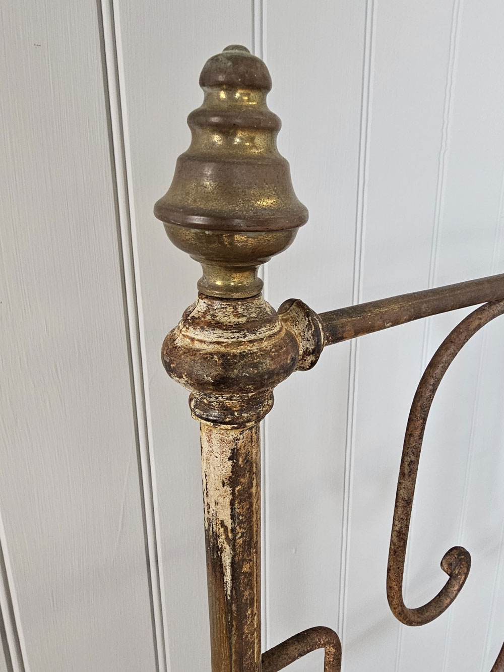 Rare Antique 5ft King size Portuguese bed frame with some nice castings and turned brass finials. Ready for restoration in your choice of colour.