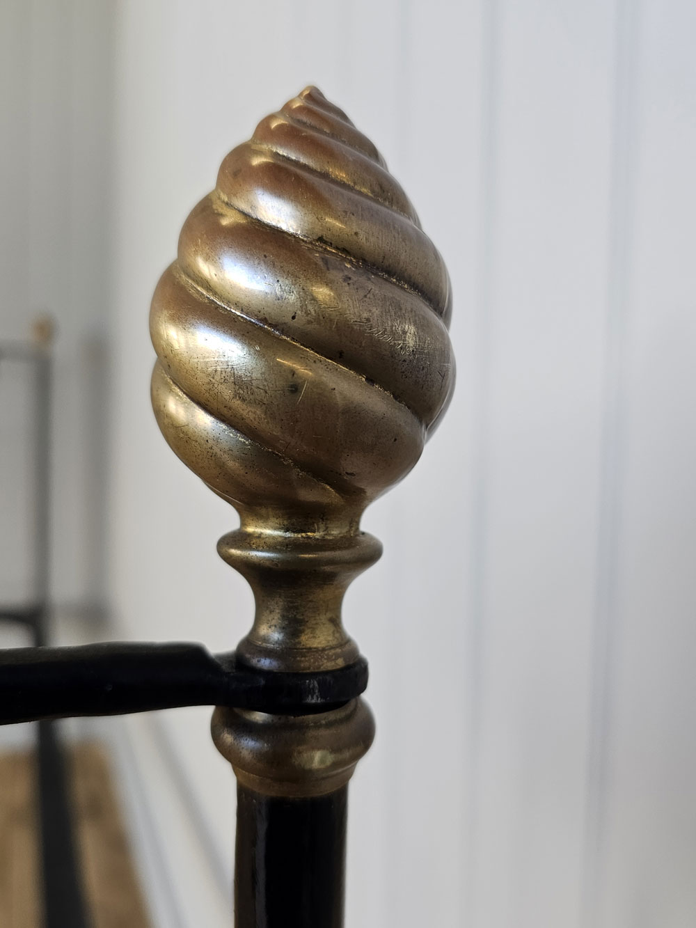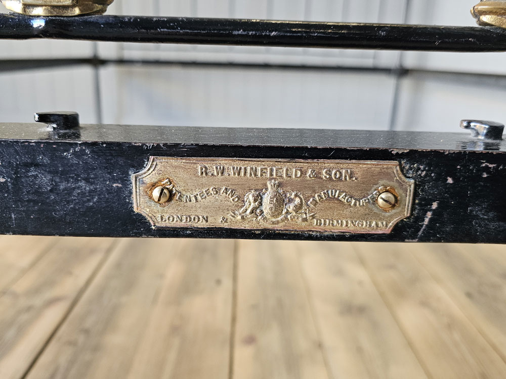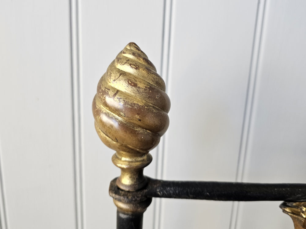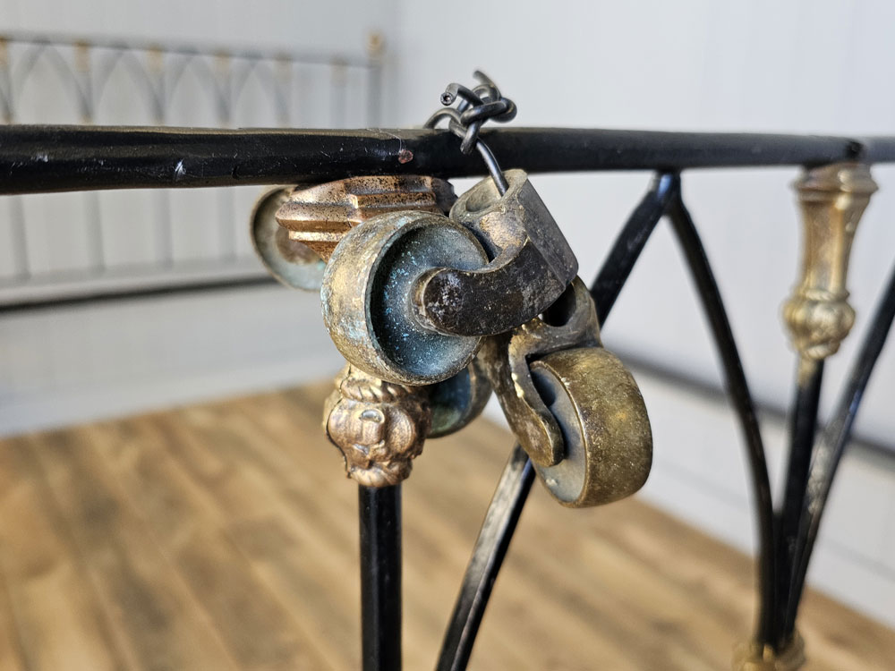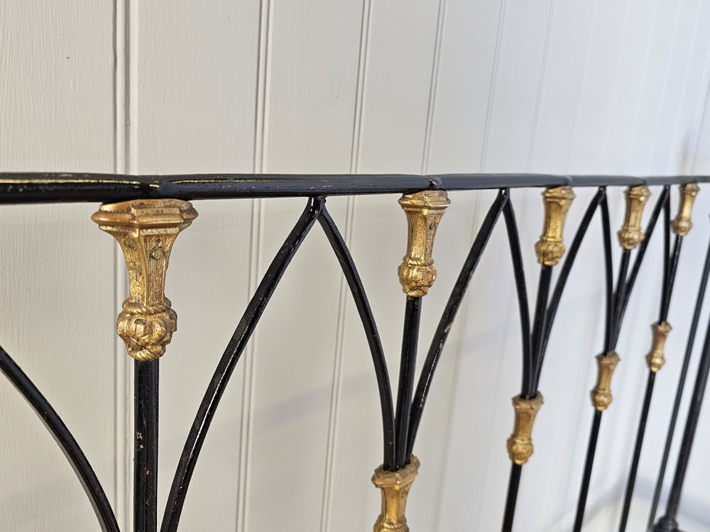 Antique brass and iron R.W Winfield & Son, Circa 1870's 5ft king size bed frame. Bought in the 1980's from Ronnie Barkers Antique Shop, The Emporium in Chipping Norton, Oxfordshire by the previous owner. Quite a unique bed frame with gothic arches and Mr Whippy icecream finials!! The bed has been widened to take a UK King size mattress. Ready for restoration in your choice of colour.