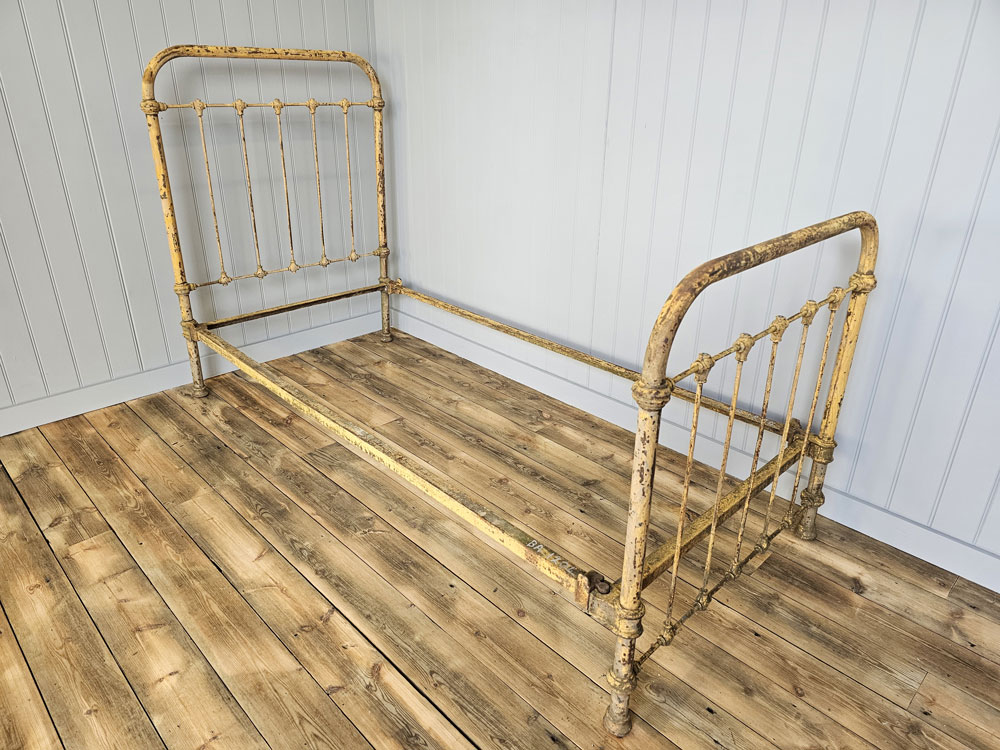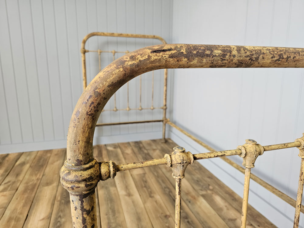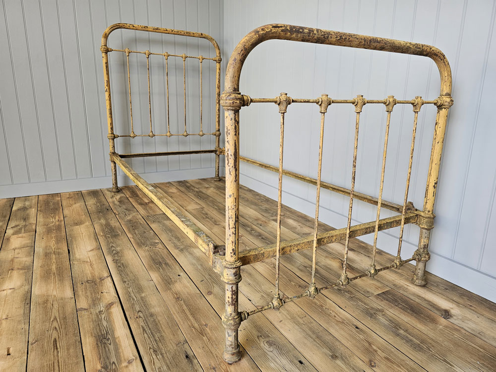 Antique French Iron 3ft single bed frame from french barn. The bed is now awaiting restoration in your choice of colour.