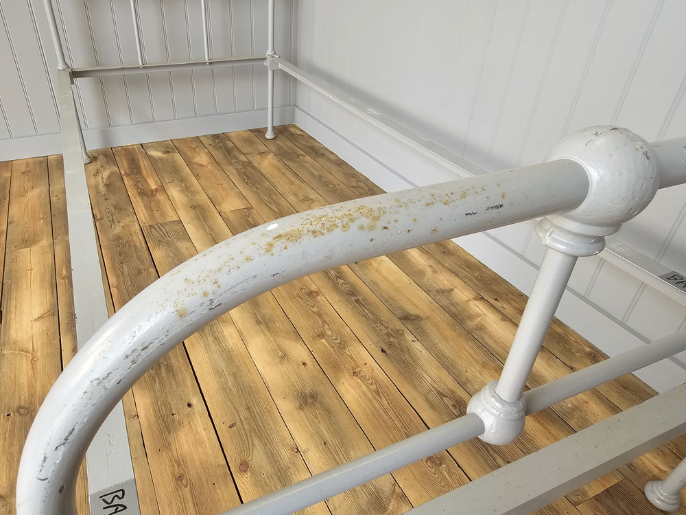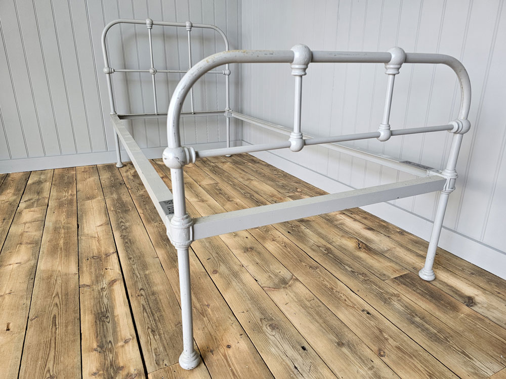 Antique Victorian Iron 3ft single Dorm bed frame with good quality castings. The bed is now awaiting restoration in your choice of colour.