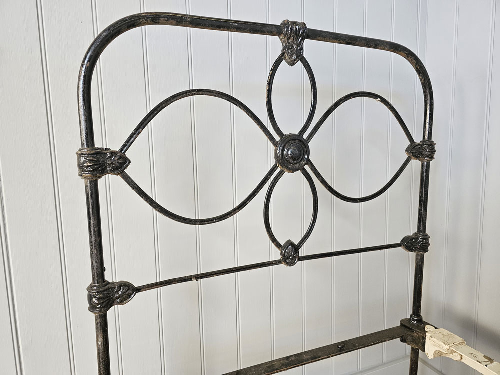 Antique Victorian all Iron footless 2ft 6in small single bed frame. The bed is now awaiting restoration in your choice of colour.
