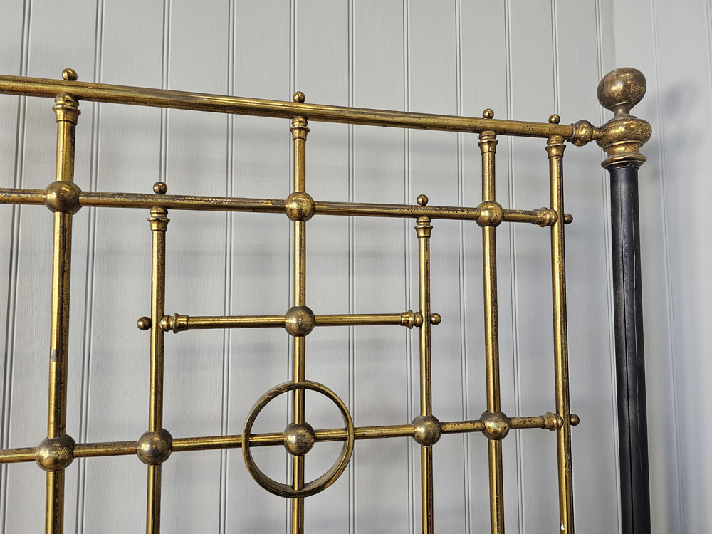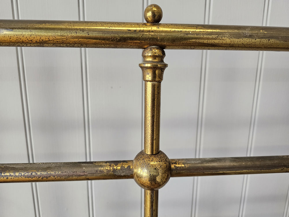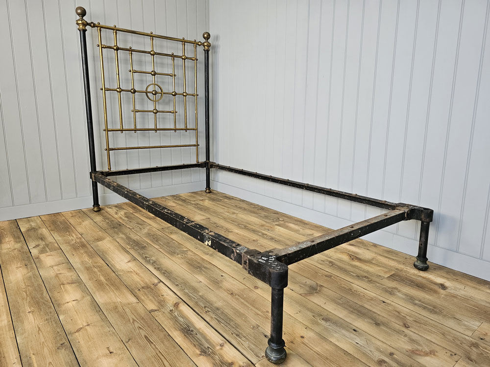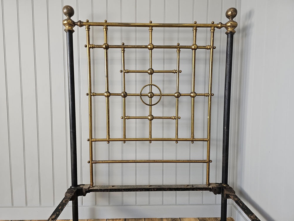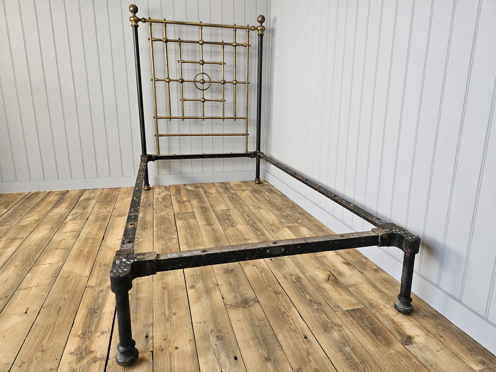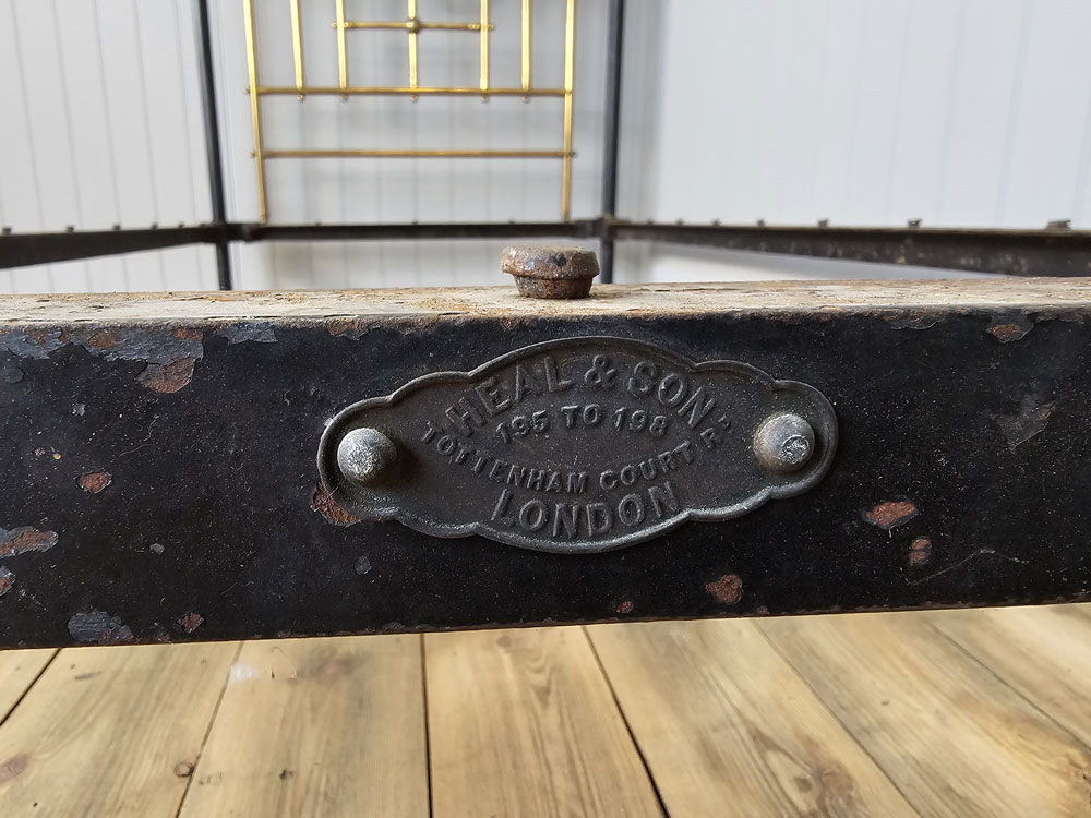 Quality Antique circa 1880s Heal & Son, Tottenham Court Road, London brass & Iron 3ft 6in large single footless bed frame. Ready for restoration in your choice of colour.