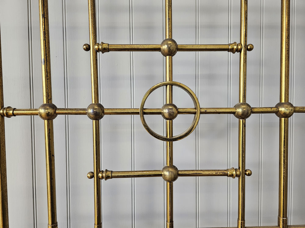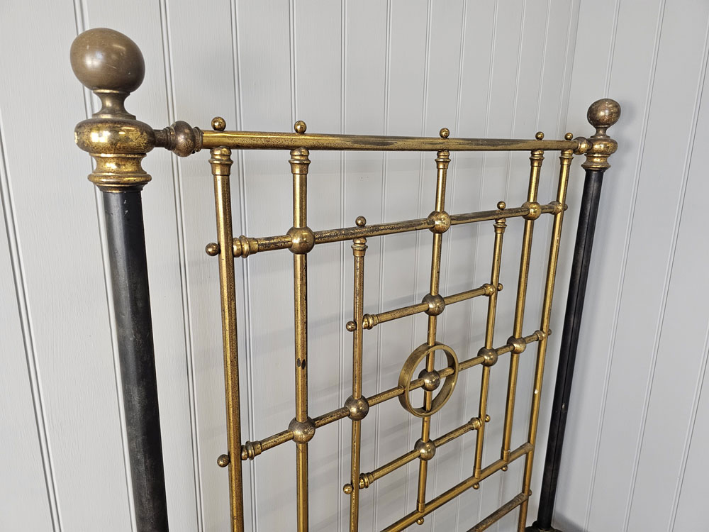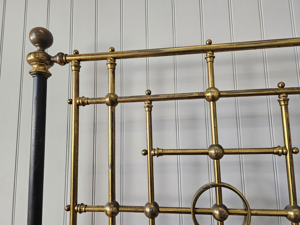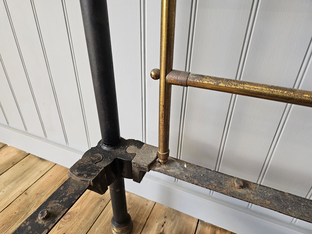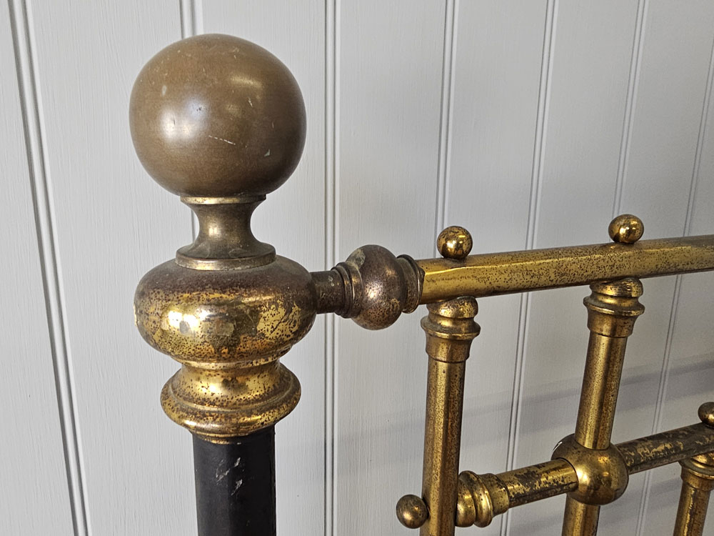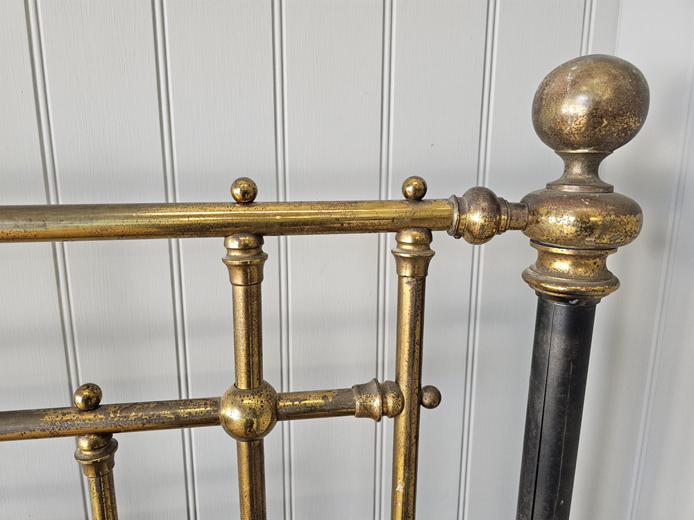 Quality Antique circa 1880s Heal & Son, Tottenham Court Road, London brass & Iron 3ft 6in large single footless bed frame. Ready for restoration in your choice of colour.