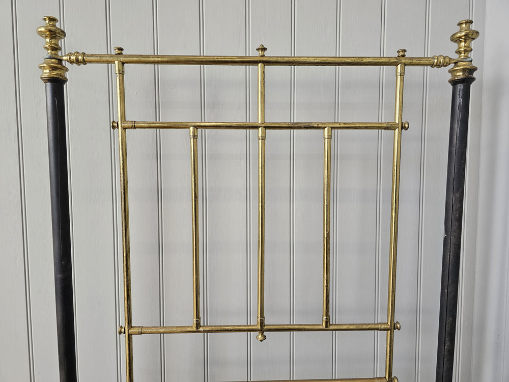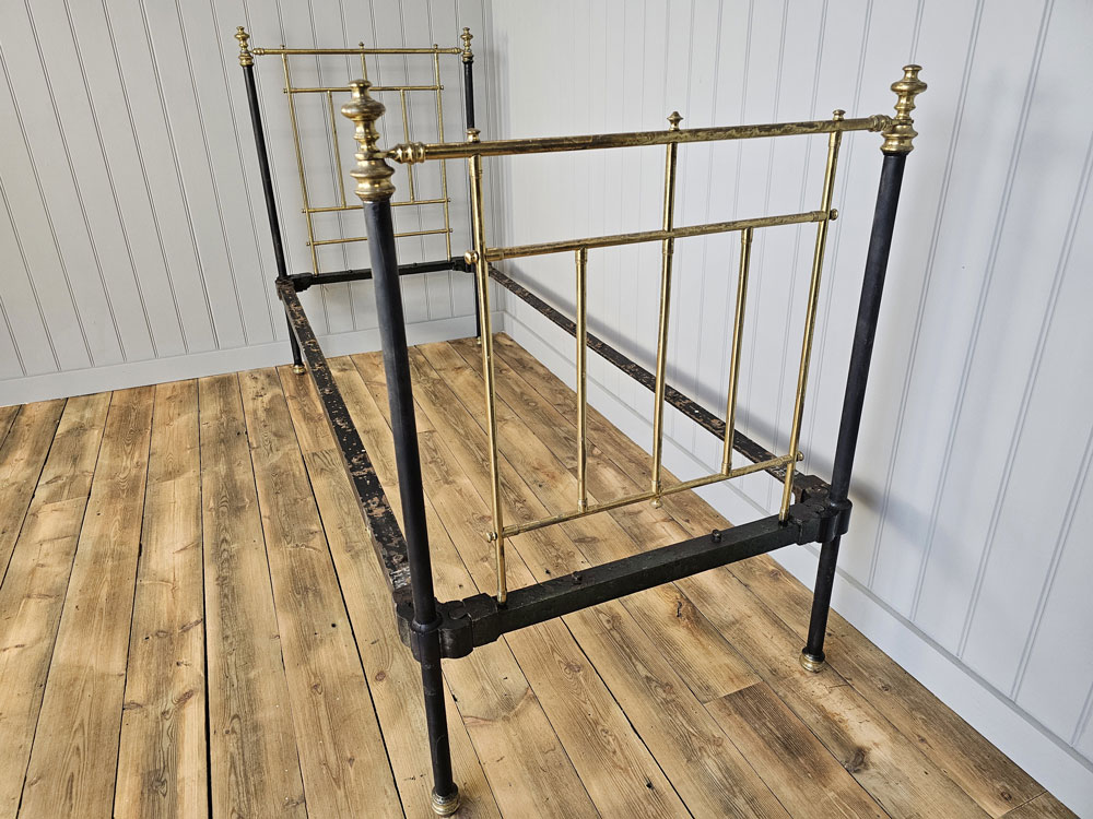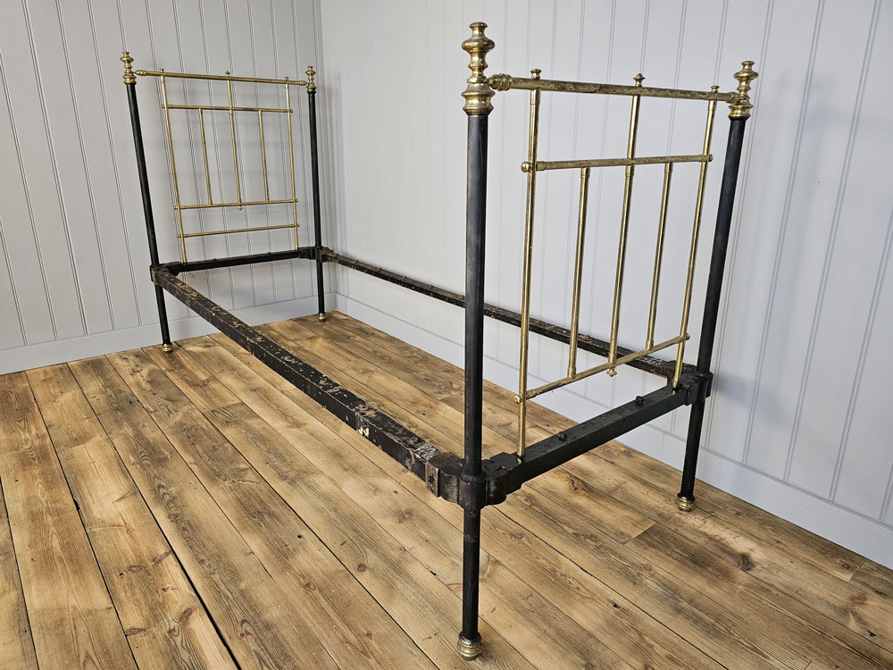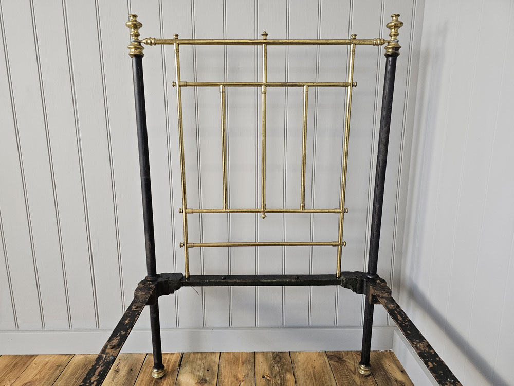 Scarce Antique Brass & Iron 2ft 6in small single bed frame with turned brass finials. Unusual to find this style in 2ft 6in. Ready for restoration in your choice of colour.
