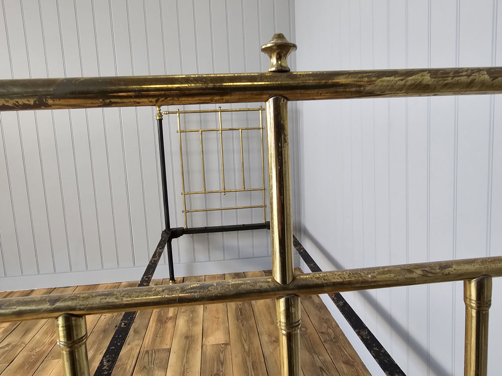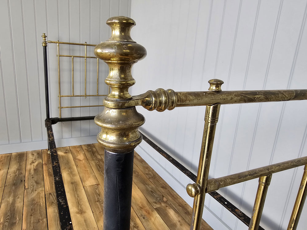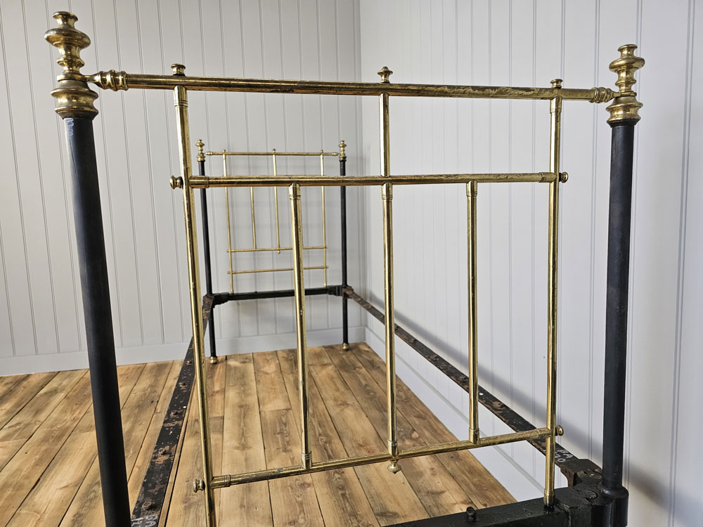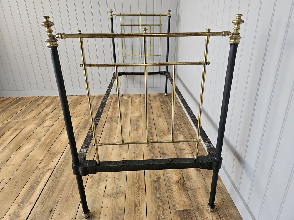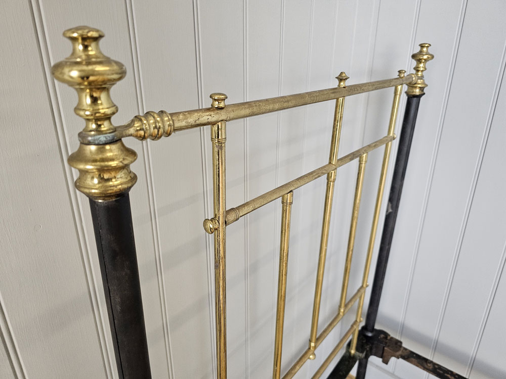 Scarce Antique Brass & Iron 2ft 6in small single bed frame with turned brass finials. Unusual to find this style in 2ft 6in. Ready for restoration in your choice of colour.