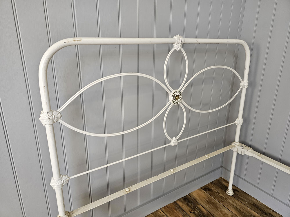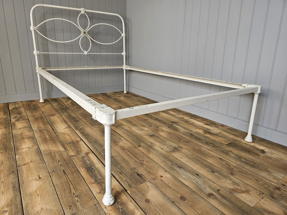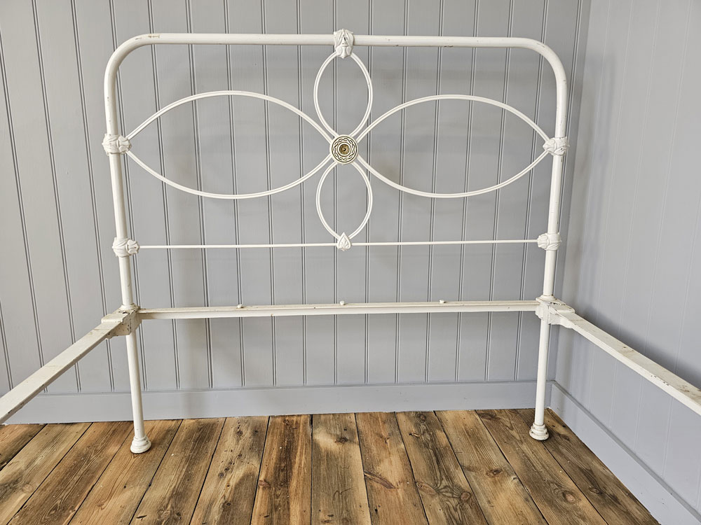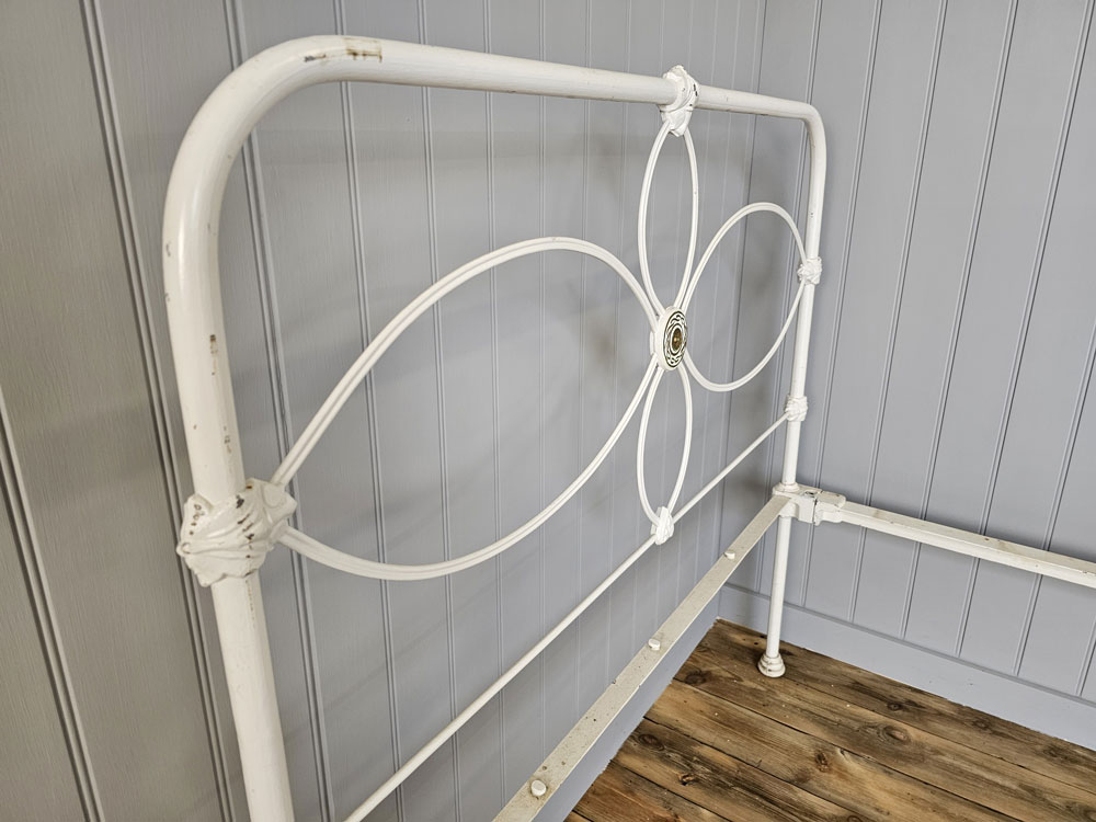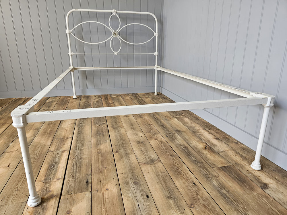 Antique small double iron footless bed frame. Ready for restoration in your choice of colour.