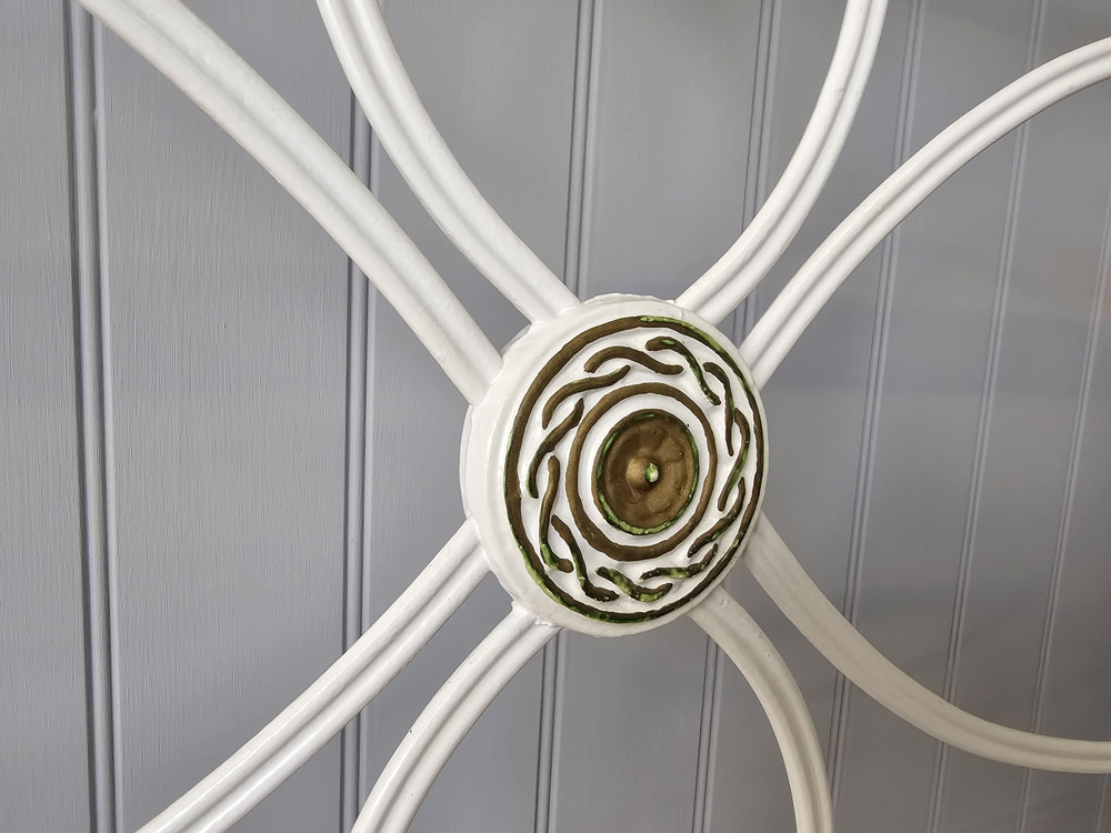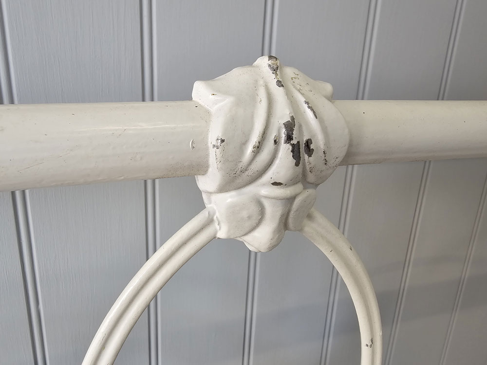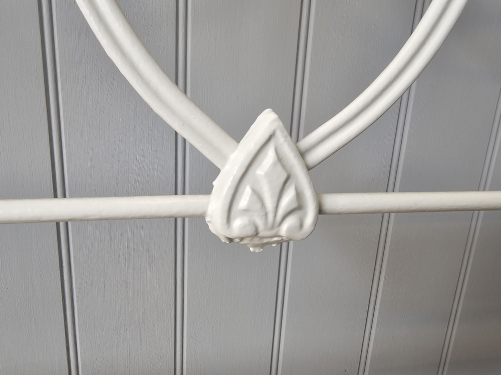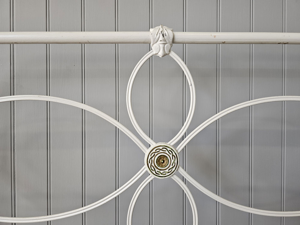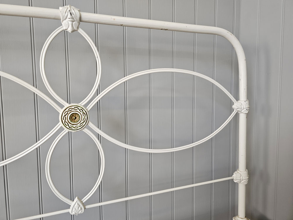 Antique small double iron footless bed frame. Ready for restoration in your choice of colour.